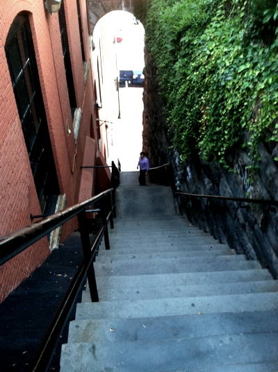 Exorcist steps - photo Russ Imrie - The African Queen 1951: Dir: John Huston with: Humphrey Bogart, Katharine Hepburn and Robert Morley IMDB. This model hangs at Clyde’s bar in Georgetown. Lore it’s a production miniature from the filming.